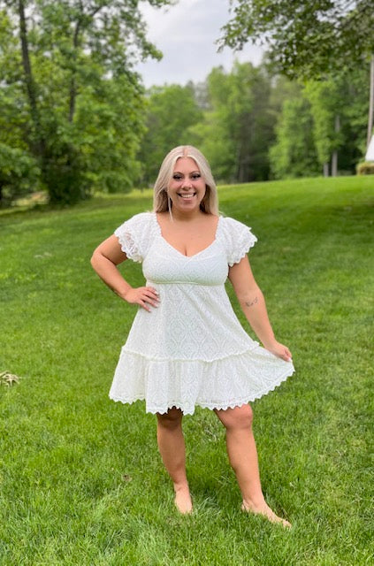 Blu Pepper® Dress With Short Flutter Sleeves- White