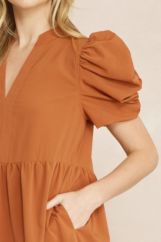 Entro® Puff Sleeve Dress with POCKETS!!!