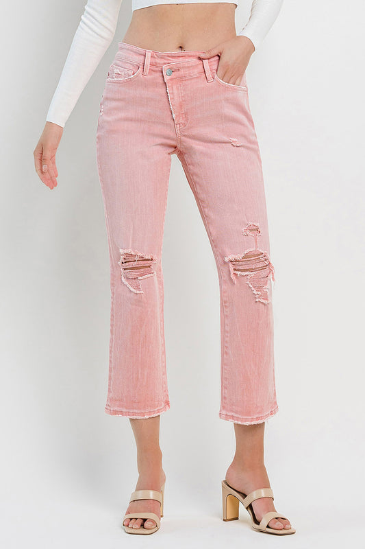 Flying Monkey High Rise Cross Cross Crop Jean in Bridal Rose