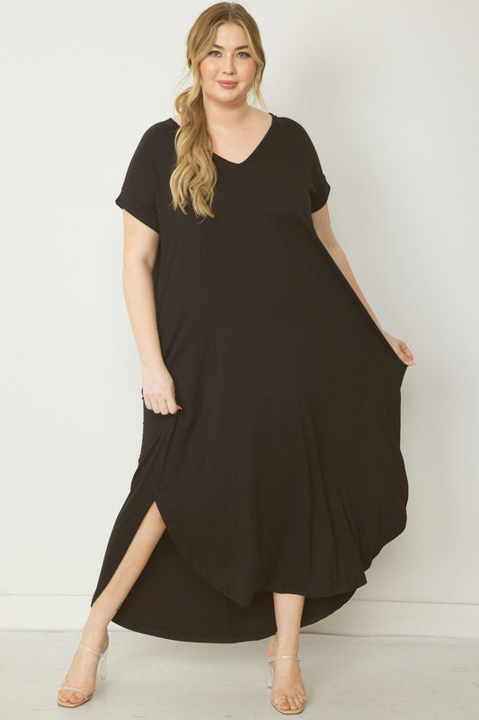 Jersey Knit Maxi Dress With Pockets & Rolled Sleeve Available in Small - 2XL