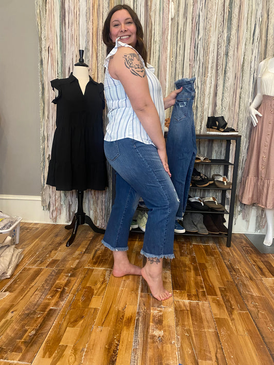 Judy Blue® High Waisted Fray Waistband & Hem Crop Jeans