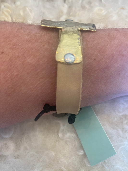 Julio Designs®- Tecate Leather Bracelet with Hammered Gold Cross