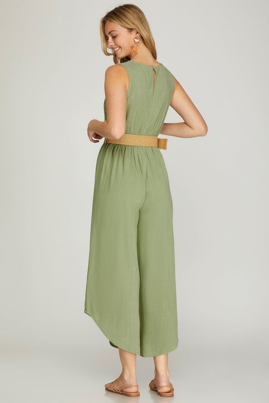 "Vineyard Taste" Jumpsuit with Belt- Olive