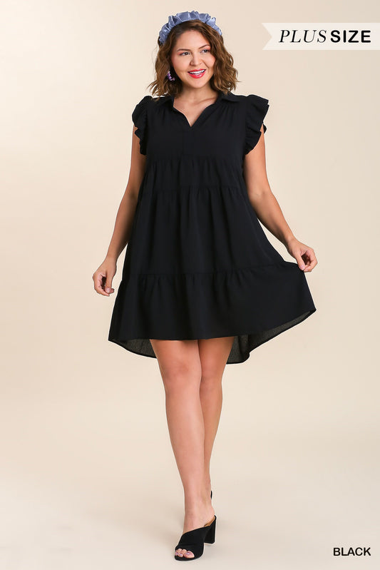 UMGEE® Tiered, Flutter Sleeves Dress-Black (Plus)