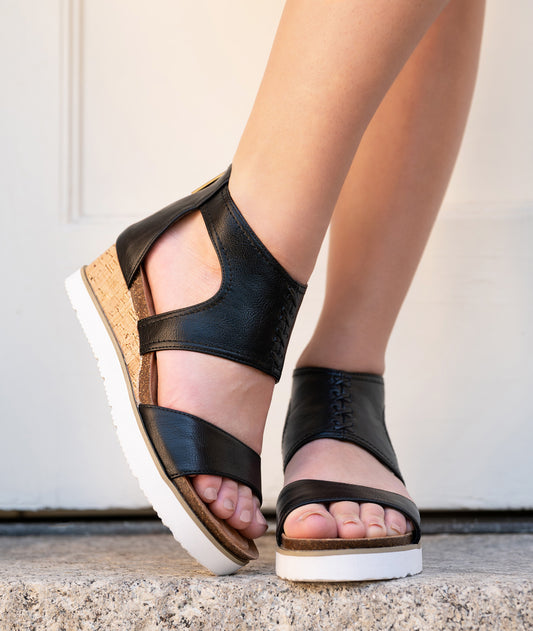 Corkys®"Sugar & Spice" Strappy Wedge Sandals- Black