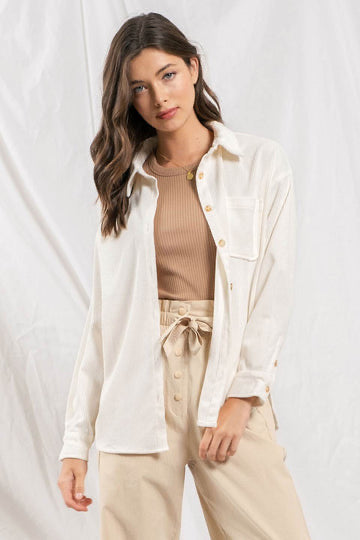 Corduroy Button up Shacket- off white