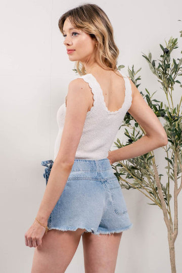 Blu Pepper® Scalloped edge, Crop length, Knit Tank Top