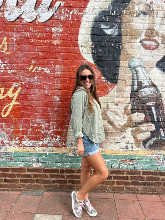 Z Supply The Perfect Linen Top-Avocado