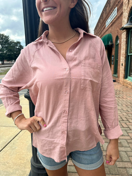 The Perfect Linen Top-Pink Smoke