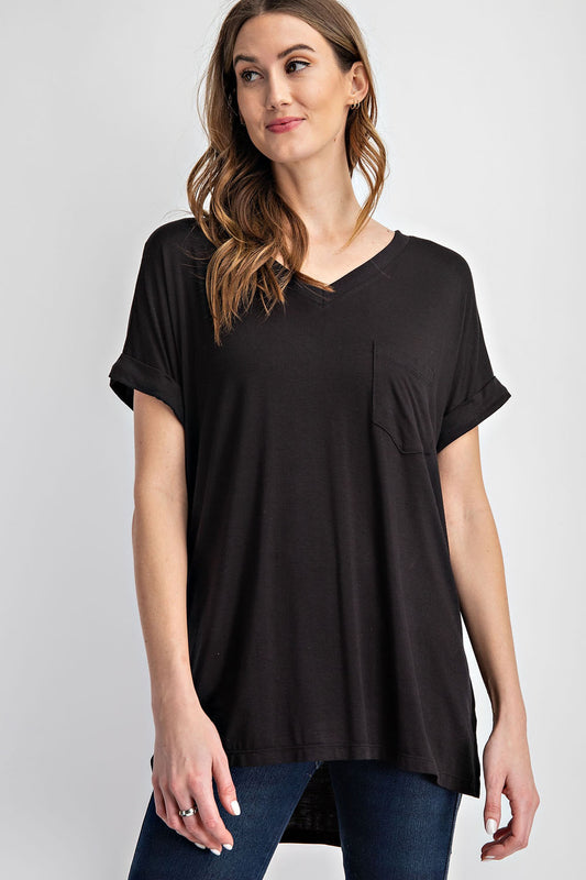 Rae Mode® Basic Booty Cover, High-Low T-shirt- Black