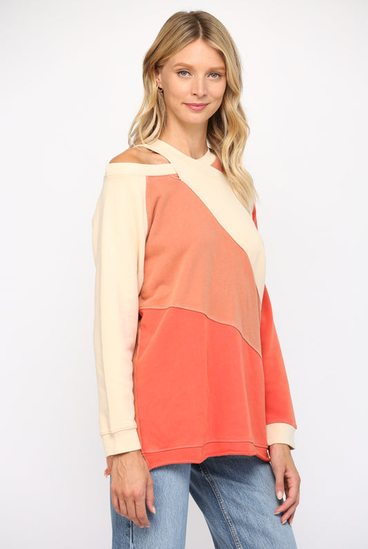 FATE® Washed Cotton Color Block Cold Shoulder Tunic Top
