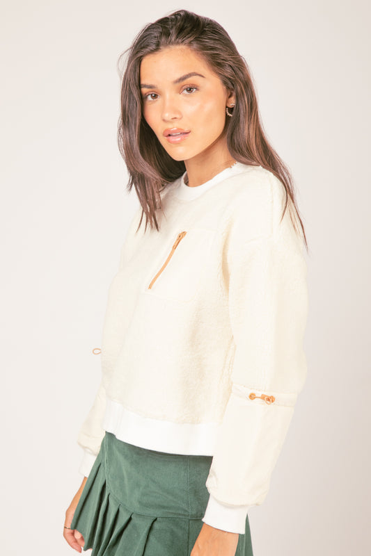 Fuzzy Cozy Sweater With Bishop Sleeve