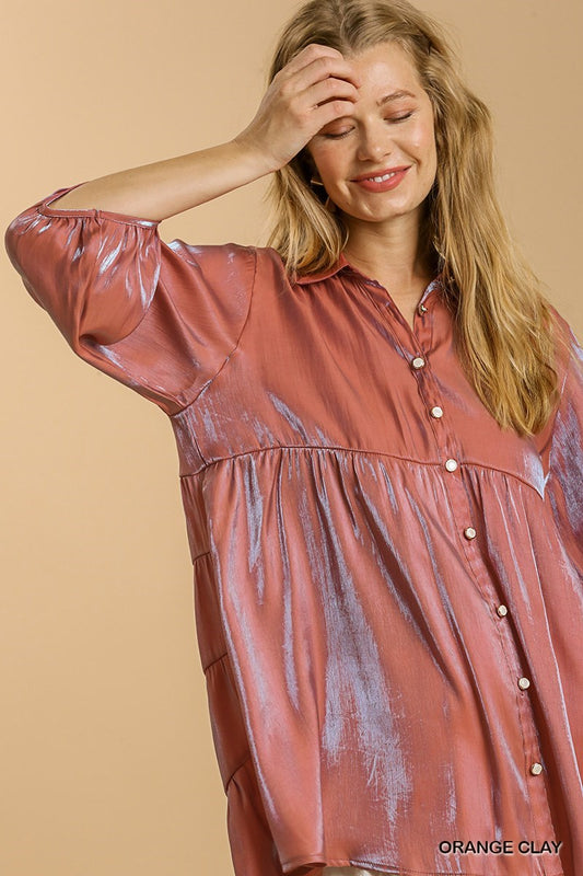 UMGEE® Shimmer Satin Button Down High-Low Hem Tunic Dress