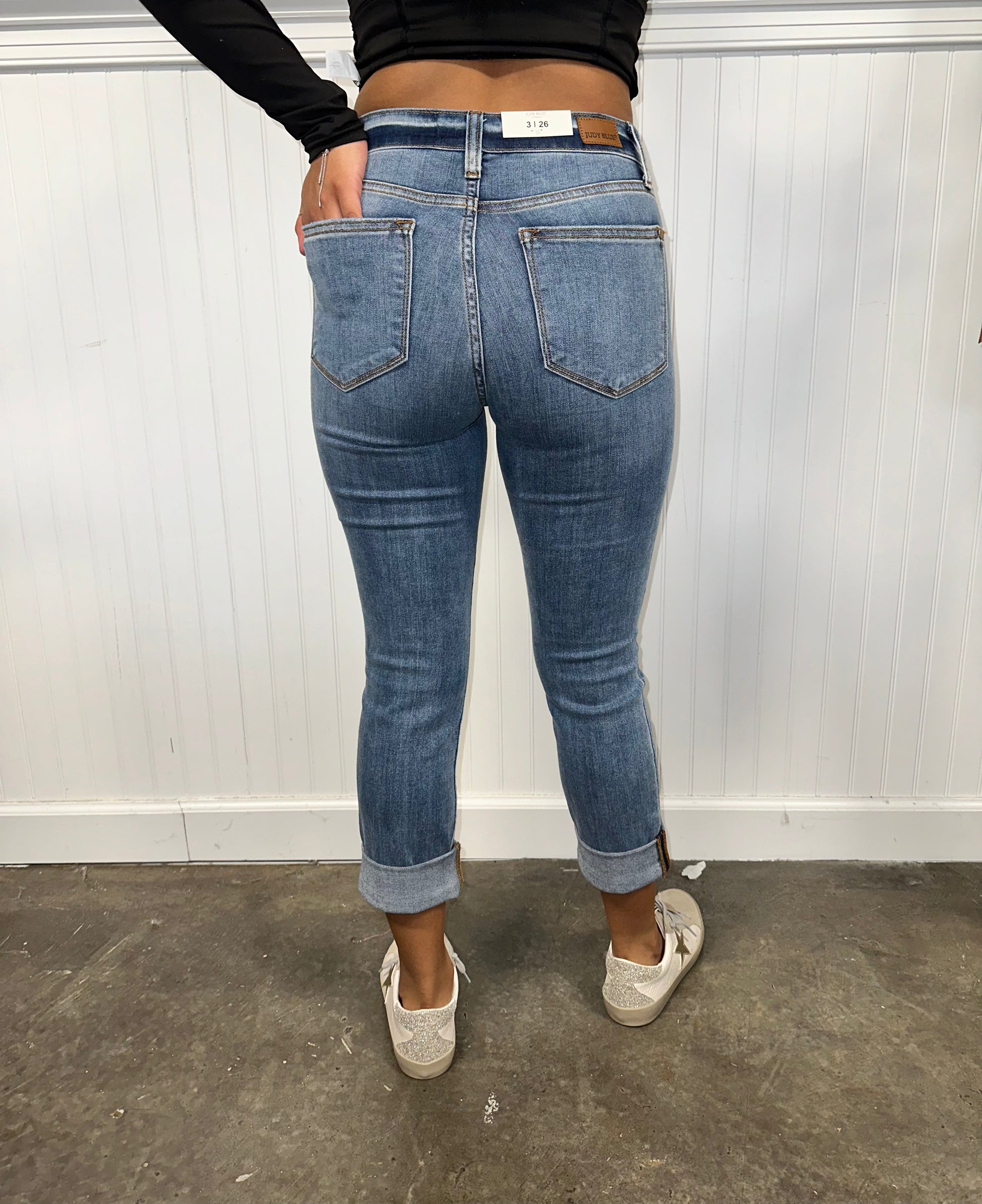 Step into style with the ''Get Cuffed' Judy Blue mid-rise cuffed capri – the perfect blend of comfort and fashion. These cuffed skinny capris in a timeless mid-wash denim offer a versatile and chic look for any casual occasion. The mid-rise design ensures a flattering fit, while the trendy cuffs add a touch of sophistication to your ensemble. Elevate your wardrobe with the classic appeal of Judy Blue's mid-rise cuffed capri, bringing together the comfort of denim with a stylish twist for a fashion-forward statement.