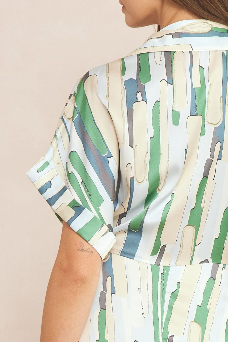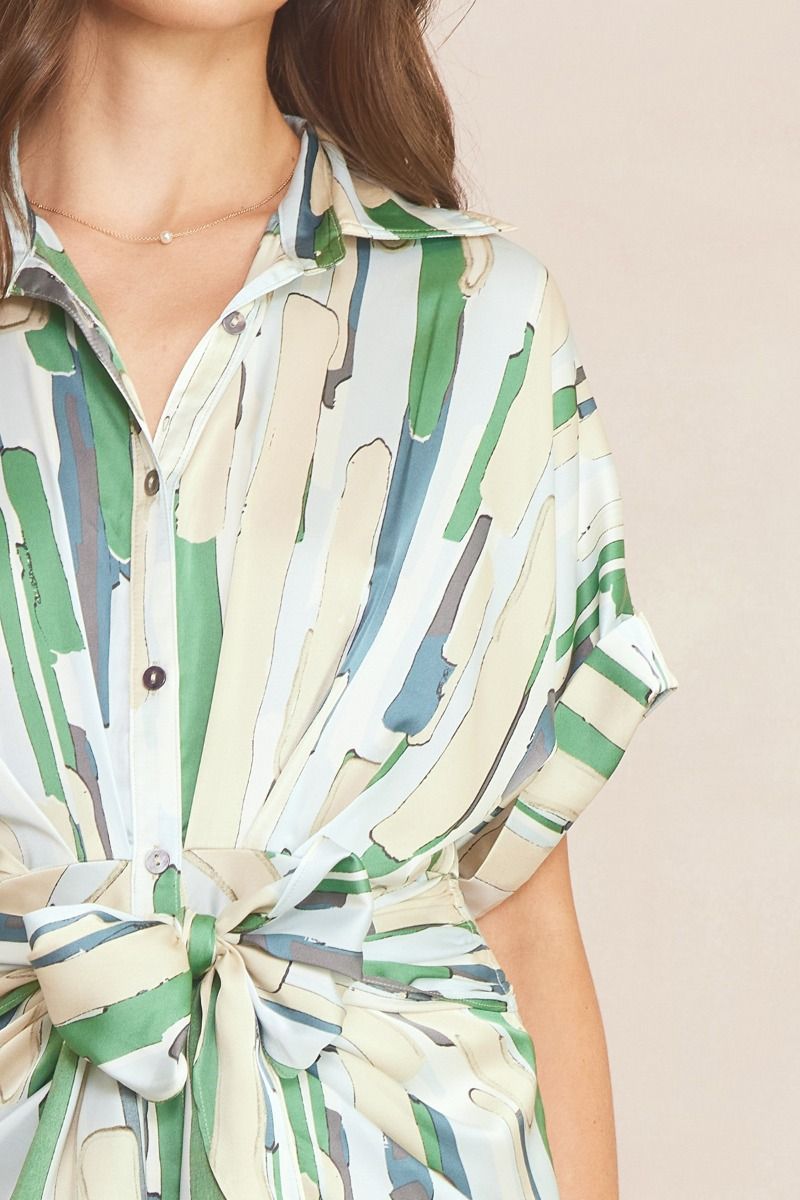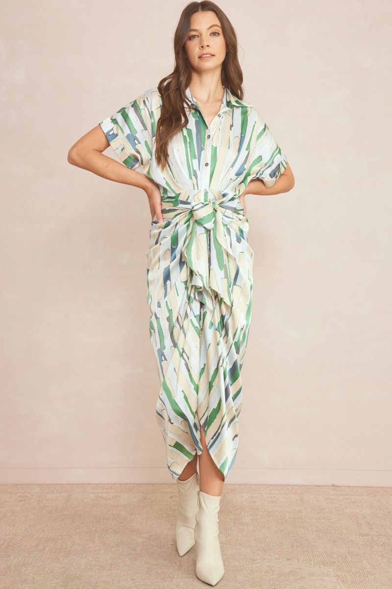 Elevate your style with our Olive Combo Printed Satin Button Down Midi Dress. This dress is a perfect blend of elegance and comfort. Featuring a captivating printed design, it's a head-turner for any occasion.