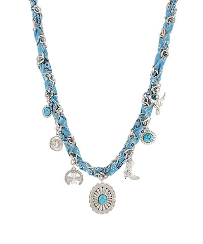 Western Charm blue Scarf Necklace